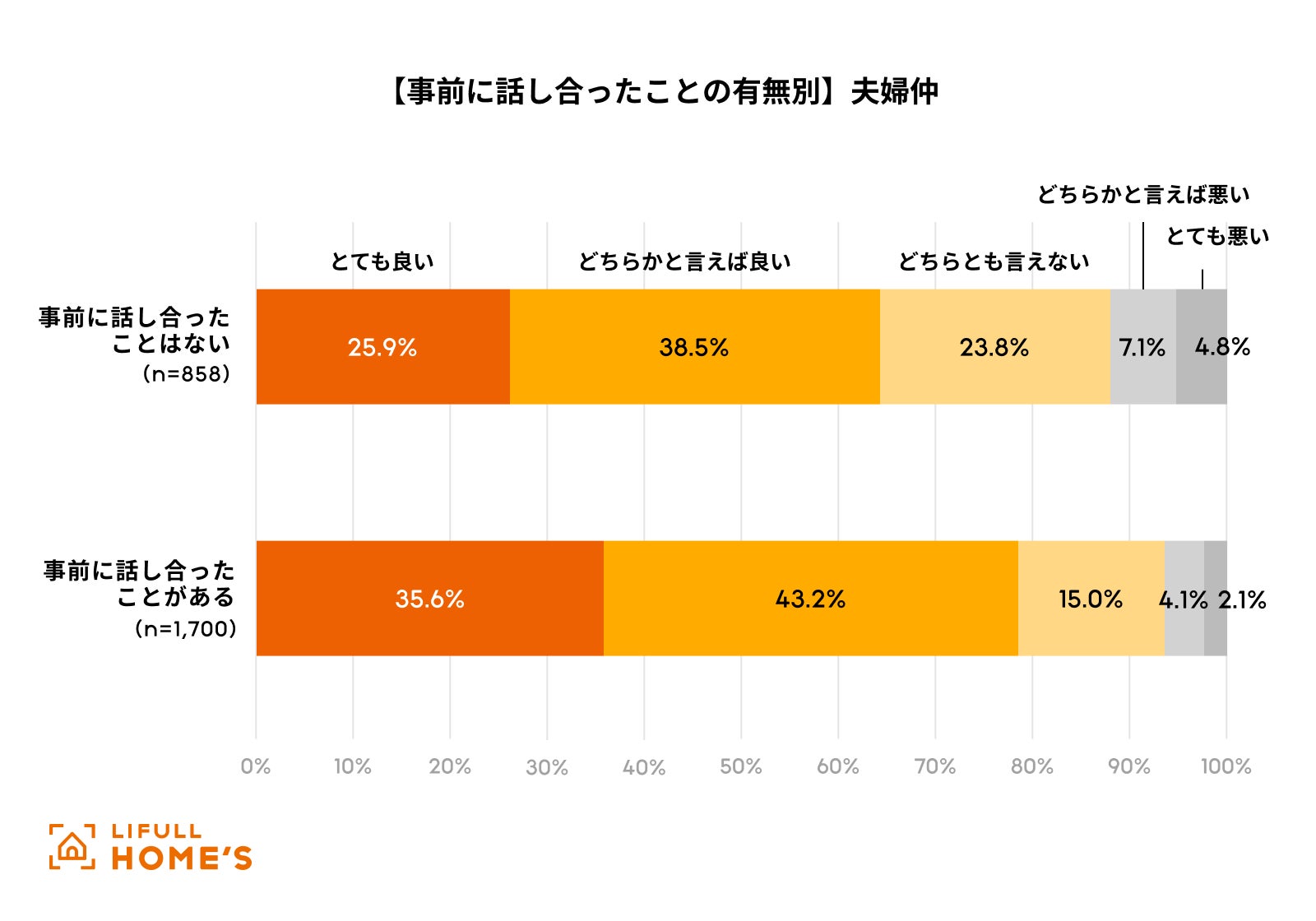 事前に話し合ったことのある夫婦の方が「良好」割合が15ptほど高い -