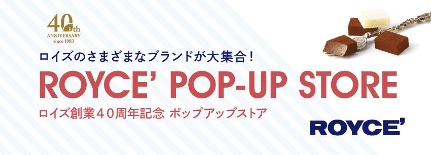 2023年の夏に創業40周年を迎えたロイズは、3月20日から山形屋(鹿児島)に「ロイズ創業40周年記念 ポップアップストア」を出店。定番人気のチョコレートのほか、初出品のロイズ京都やロイズ石垣島などの商品を販売いたします。