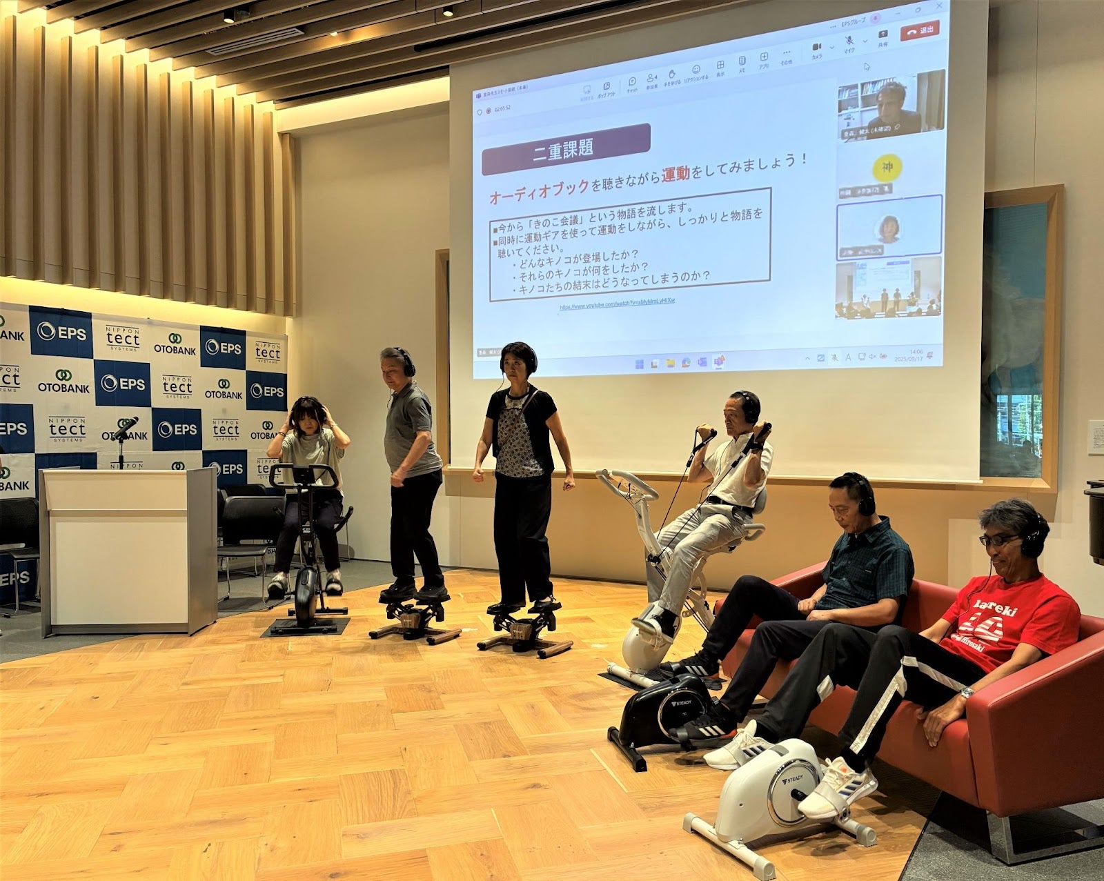 講演では、オーディオブックを聴きながら運動を行う“ながら運動”に関する研究成果が紹介され、認知機能との関連が示唆されました。