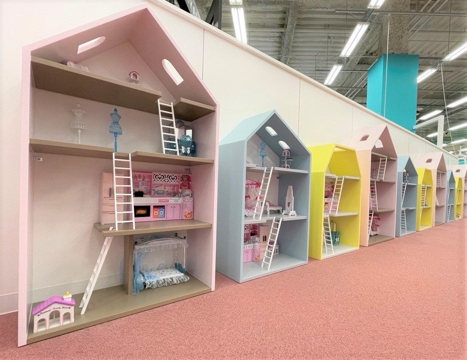 300着を超える大量のドレスから自由にコーディネートできるリカちゃんの着せ替え遊びコーナーを中心に、ドールハウスでのごっこ遊びや、リカちゃんキッチンでのままごと遊び、お人形を撮影できるフォトスポットなど、リカちゃん」遊びを満喫できるコーナーです。