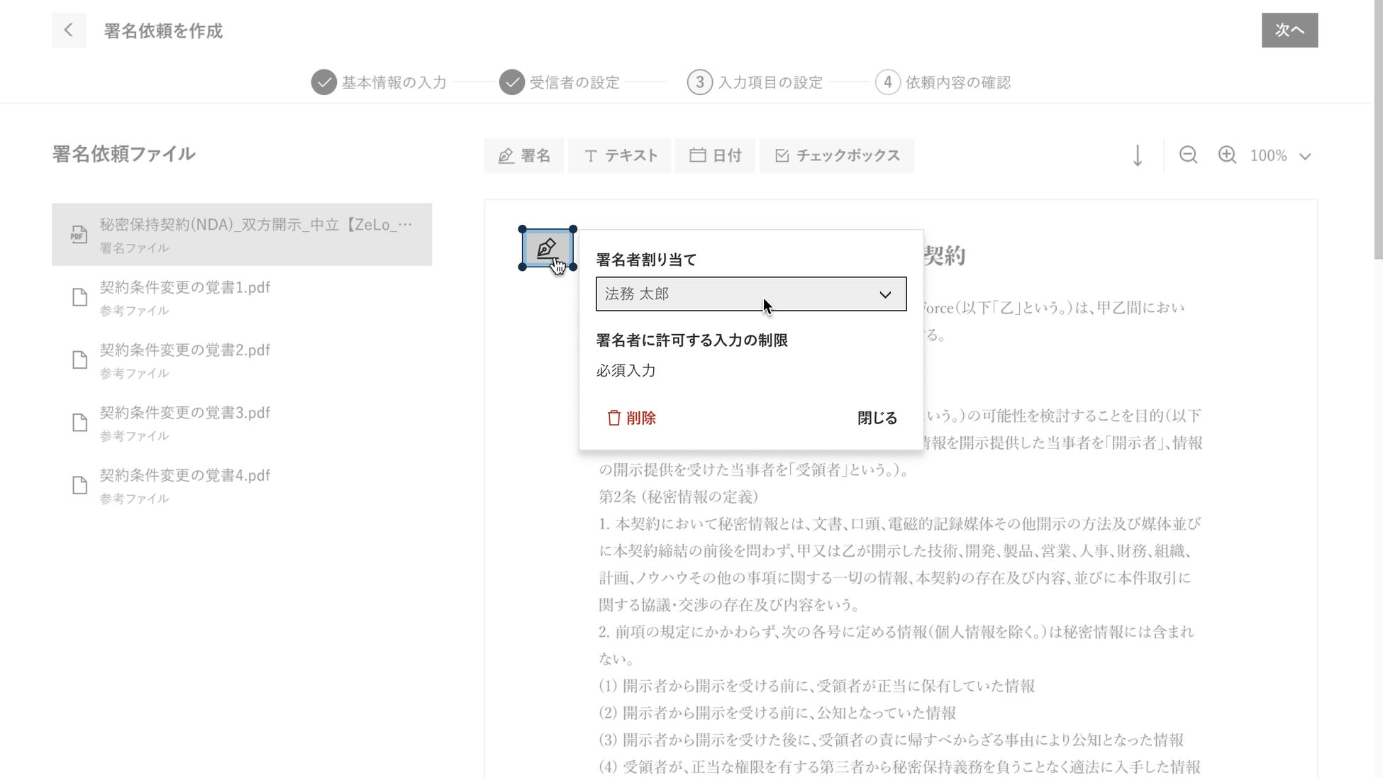 「LegalOn Cloud」の「サイン(電子契約)」は、AI法務プラットフォーム「LegalOn Cloud」上で、電子ファイルに対して電子署名を付与し、契約書の締結を完結することが可能なサービスです。
