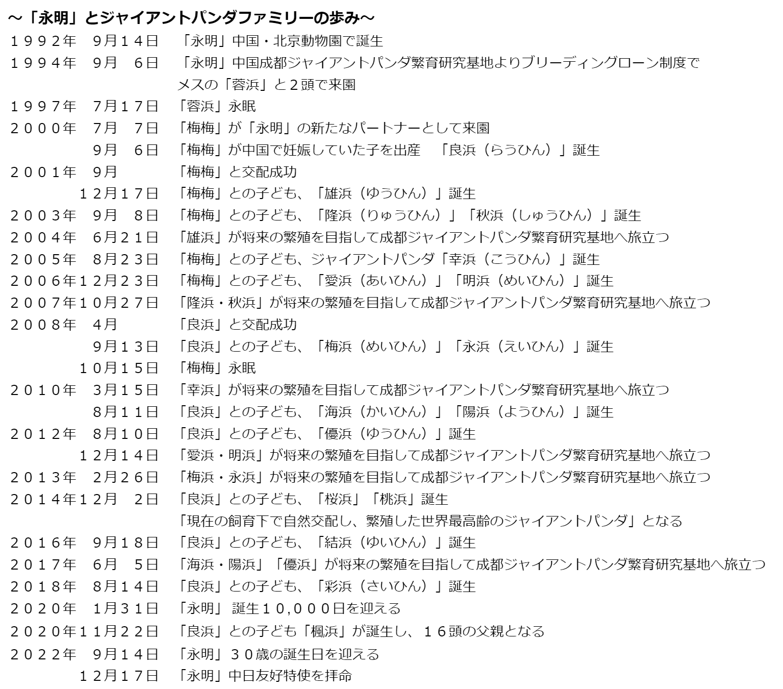 〜「永明」とジャイアントパンダファミリーの歩み〜