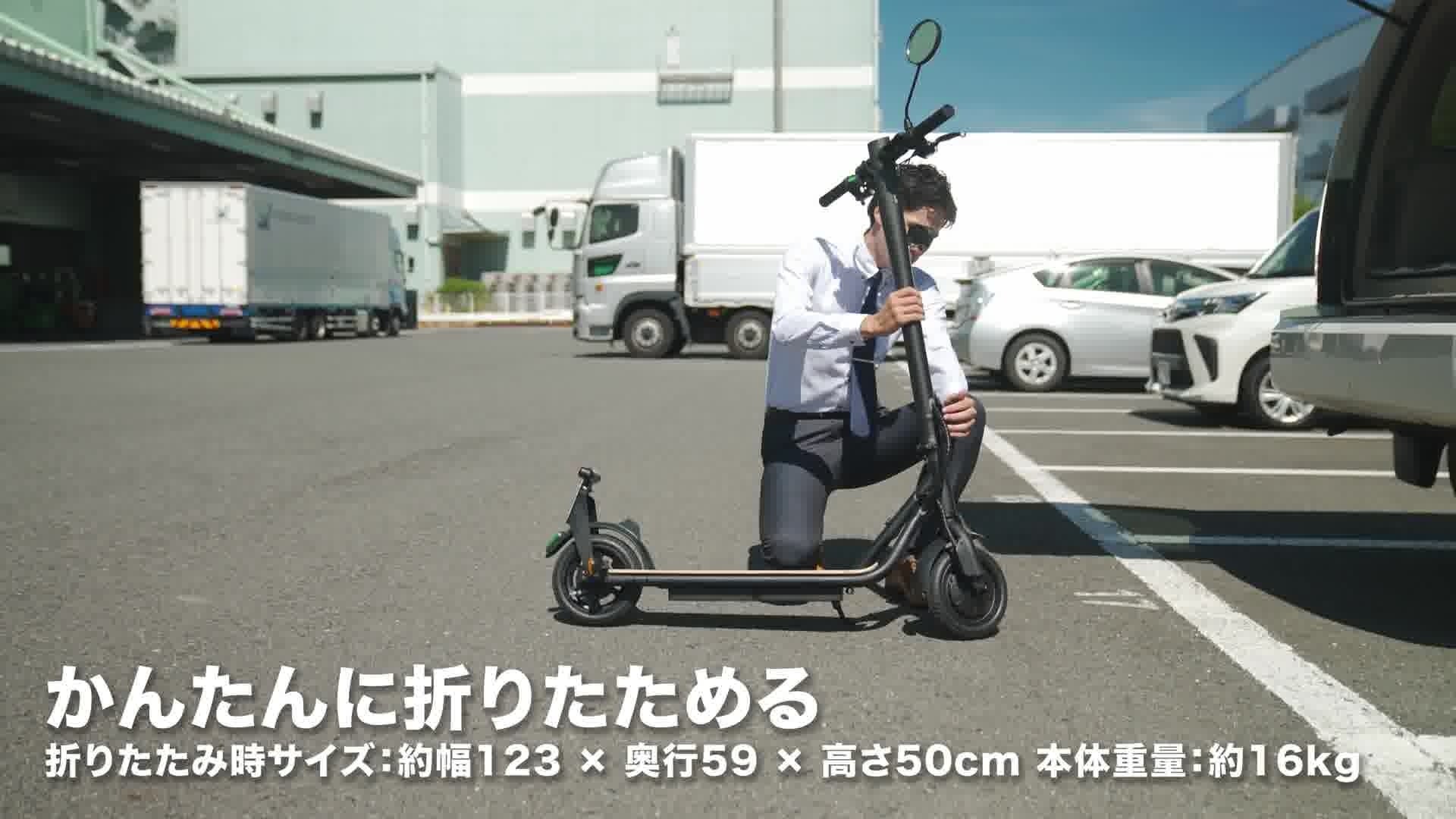 簡単、手軽、安全。初心者に優しい電動キックボードMeister.F。初心者でも乗りやすい設計でスタイリッシュなデザイン。女性でも簡単に取り扱えるよう重量わずか16.5kgと軽量で、価格も7万円台とお求めやすい金額となっております。