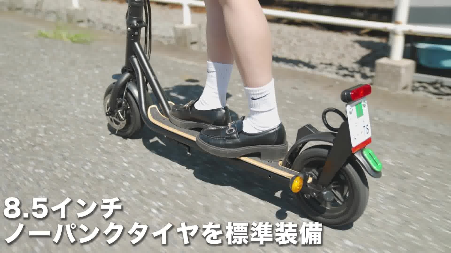 8.5インチのノーパンクタイヤはスムーズで安定感のある走行を実現。