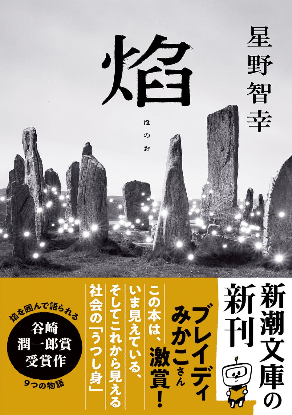 焔を囲んだ人達が、それぞれの身に起こったことを語り出す――。近隣諸国と武力衝突の危険性が高まるなか、人々が“あること”を始める「ピンク」。突然泣き出してしまう“謎の病”が大流行する「眼魚」。南米やアフリカなど各地から集まった力士が頂点をめざす「世界大角力共和国杯」。祈りや驚嘆、希望など様々な思いを込めて語られた九つの物語は、最後に大きく燃え上がる。谷崎潤一郎賞受賞作。