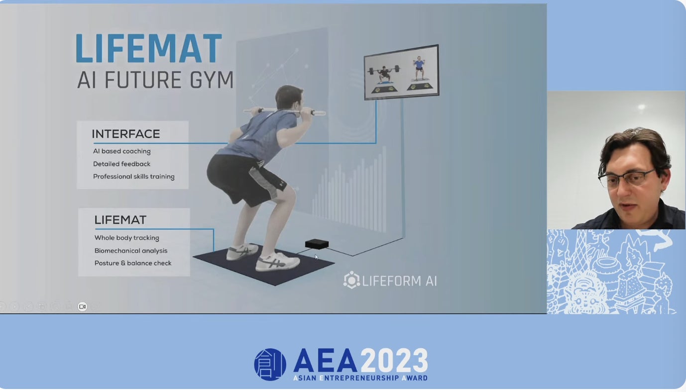 今年はさらにAEAアルムナイであるAEA2021年セミファイナリストのDr. Karlos Ishac(Lifeform AI CEO)に「AEAが未来への架け橋に。筑波大学発スタートアップが掴んだ日本企業との実証プロジェクト」をテーマに講演いただき、惜しくも授賞は逃したものの、その後もAEAと継続的に繋がり自ら手を挙げたことでチャンスをたぐり寄せた日本企業との実証プロジェクト、そこで得られた価値などついてお話いただきました。
