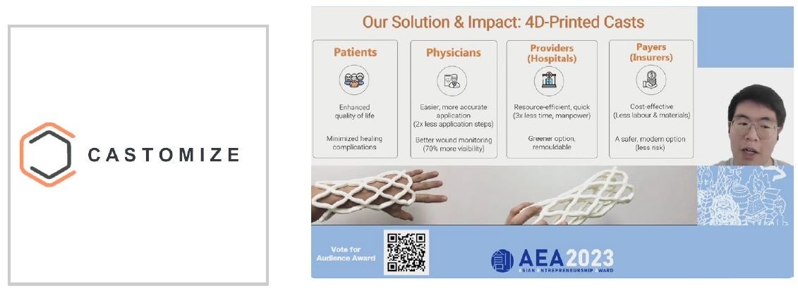 高度な製造技術とカスタマイズされたポリマーを使用した、患者や医療従事者にとって快適性、利便性、効率性を追求した4Dプリントギプスを開発。最小限の資源の使用とプロセスを実現し、低コストで医療廃棄物を減少し環境にも優しく持続可能性が高い。