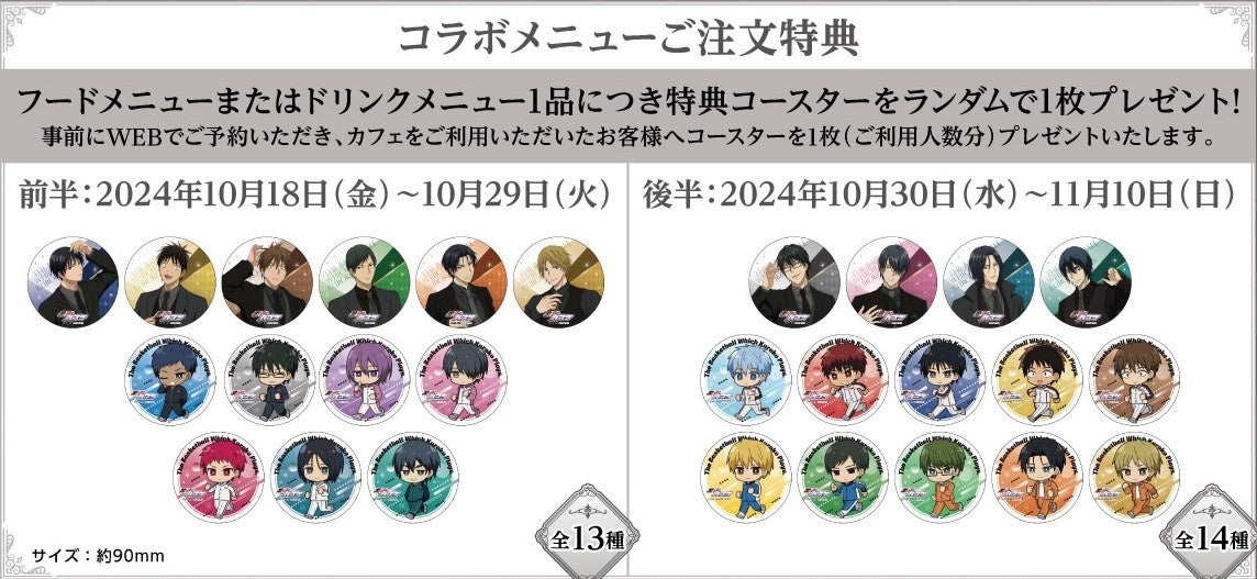 コラボメニューご注文1品ごとにコースターをランダムで1枚プレゼント!