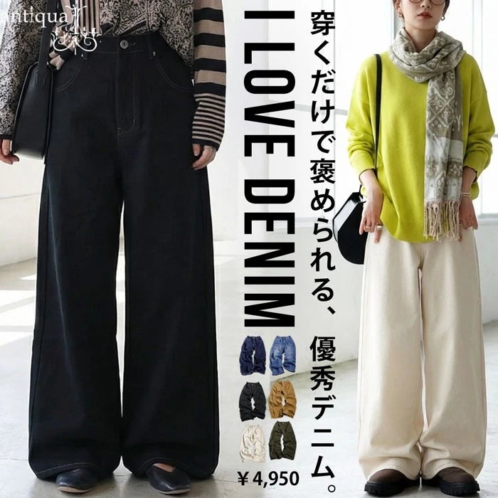 美しい落ち感と立体的なワイドラインが、履くだけでコーデ全体のバランスを整えてくれる“至極のワイドデニム”です。