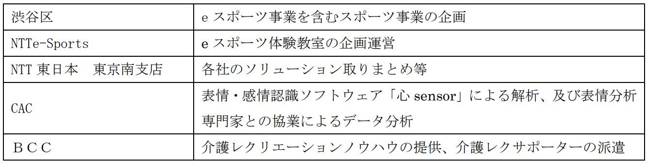 このような背景のもと、渋谷区は要配慮者である障がい者と高齢者に着目し、多世代交流が期待できる「eスポーツ体験教室」を企画しました。そしてこの企画を、NTTe-Sportsが業務委託を受け、NTT東日本 東京南支店と連携して運営。eスポーツの体験にくわえ、BCCによるレクリエーション要素を盛り込んだほか、CACが専門家監修のもとeスポーツの体験から参加者にどれだけポジティブな感情が生まれたかを、表情・感情認識ソフトウェアを活用し、客観的に検証しました。