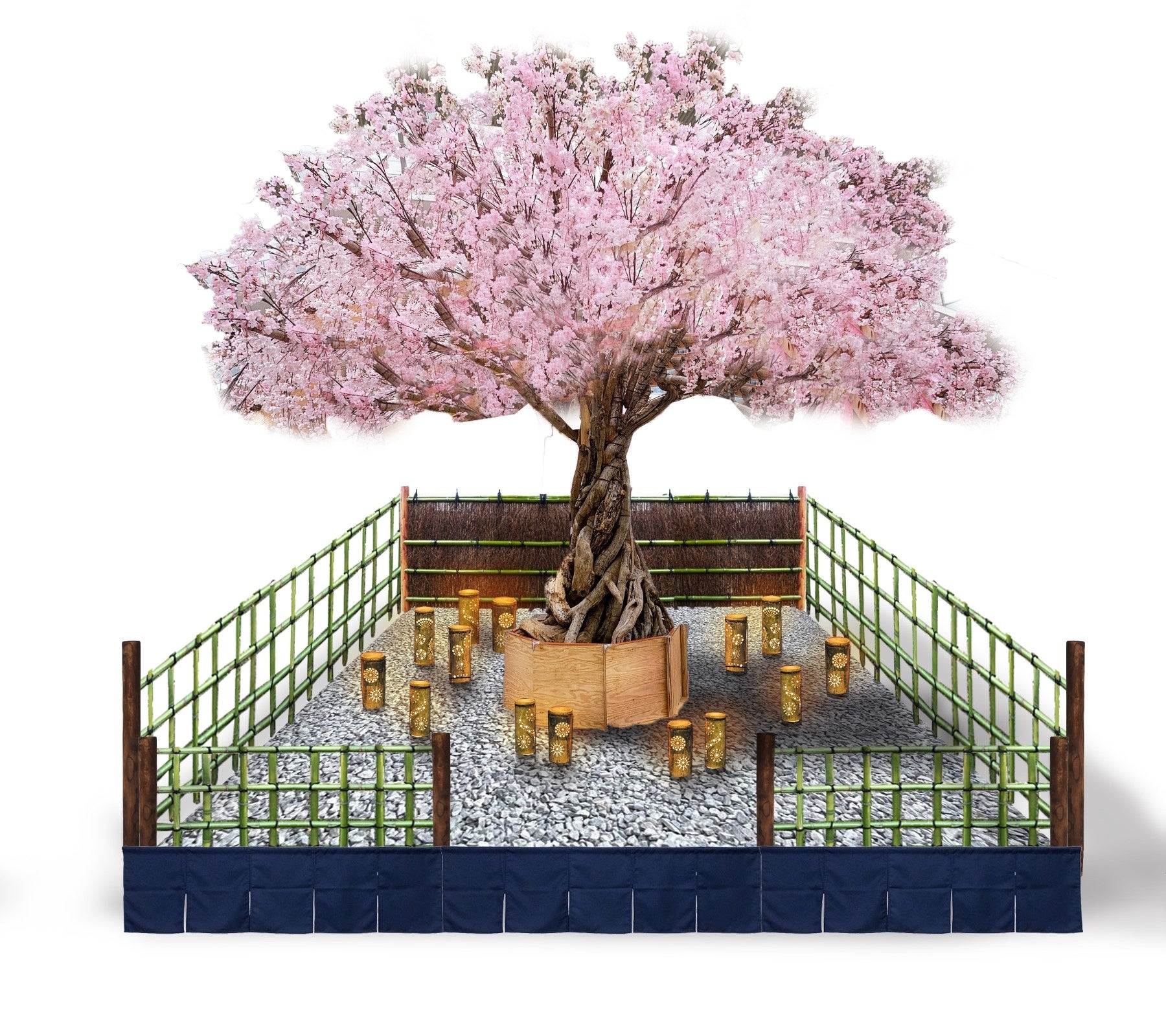 ルーファ広場には、日本の春の「和」をイメージした桜の装飾が登場。会場内では日本茶屋を連想させる飲食スペースもご用意しております。「和」と「春」を会場で味わってください。