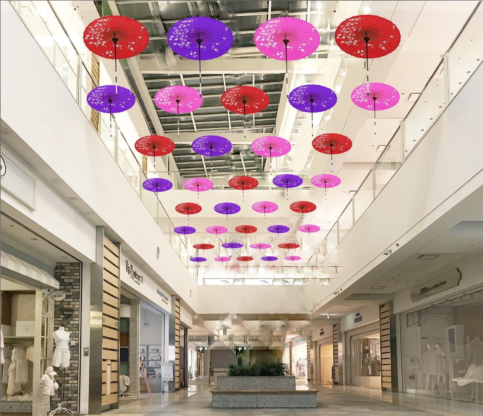 ラゾーナ川崎プラザの館内で装飾されている、色とりどりの和傘も見ごたえがあります。