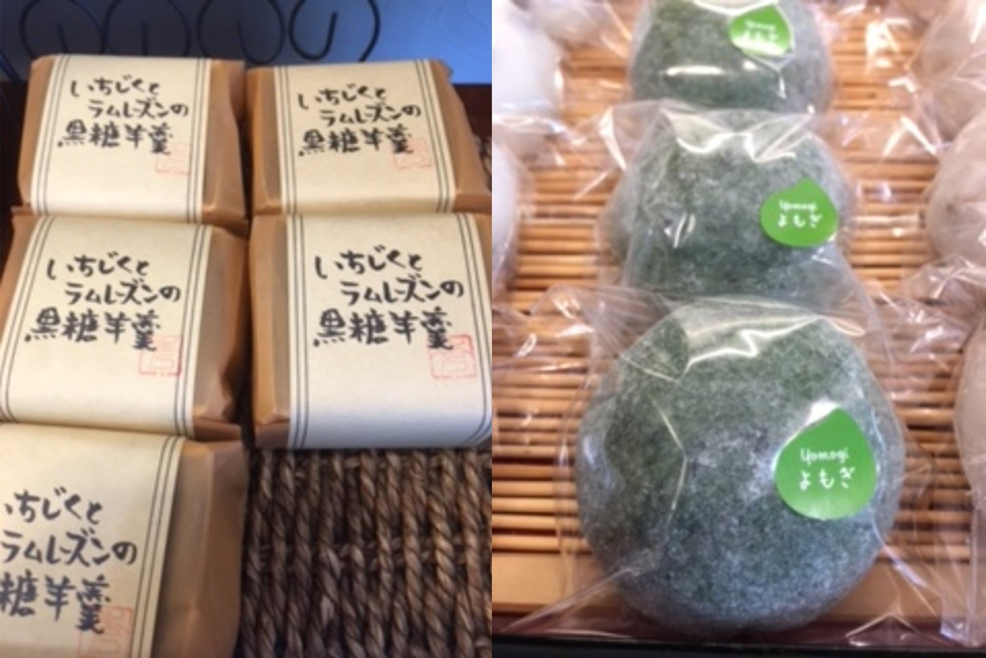 出店者③ 菓人結人「豆大福、いちじくとラムレーズンの黒糖羊羹 、他」