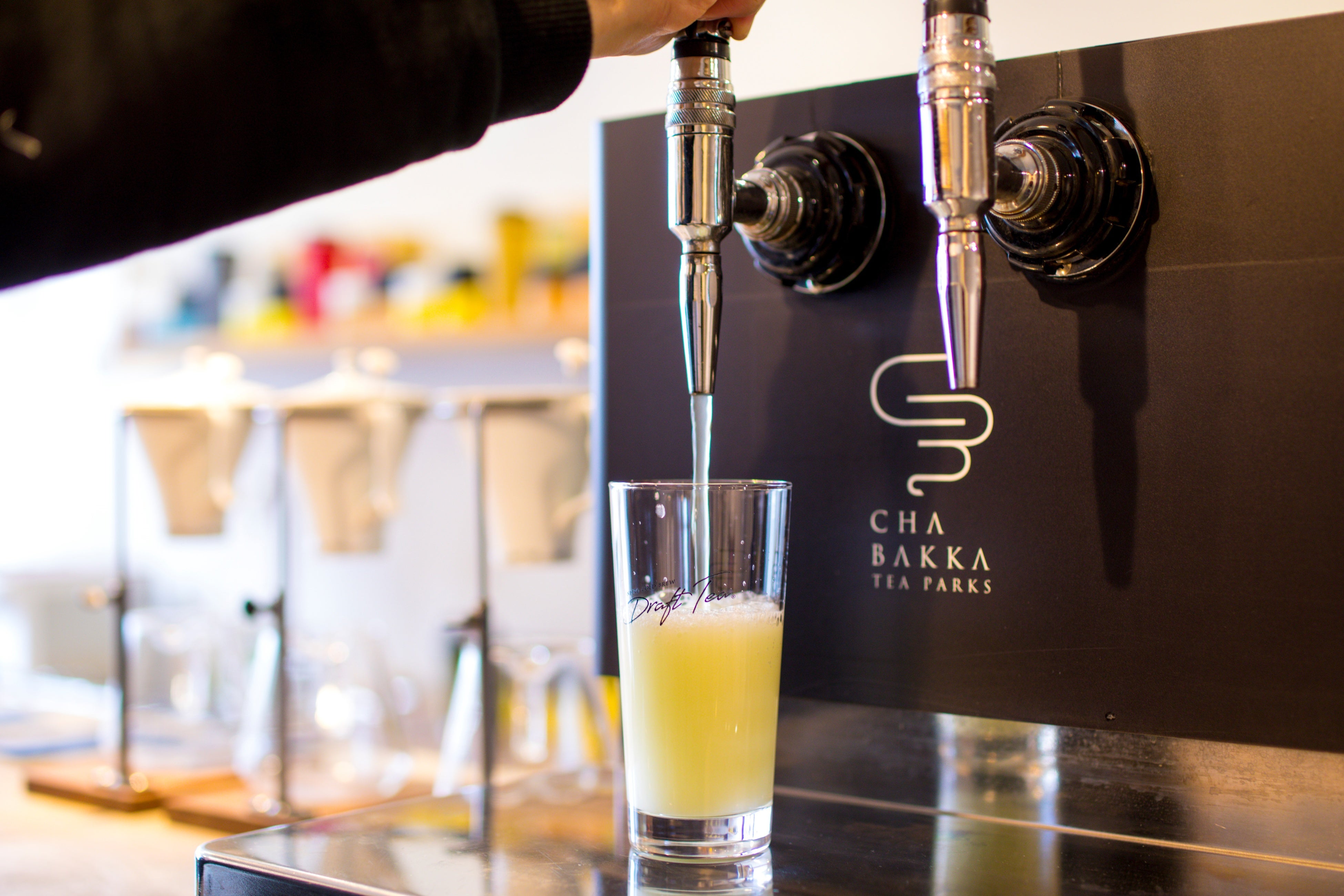 ビールサーバーから窒素をたっぷりと含ませながら注ぐ、見た目はまるでビールのようなクリーミーな泡の乗った水出し茶”ドラフトティー”の試飲や、一杯一杯を丁寧に抽出した各種ホットティーを販売。