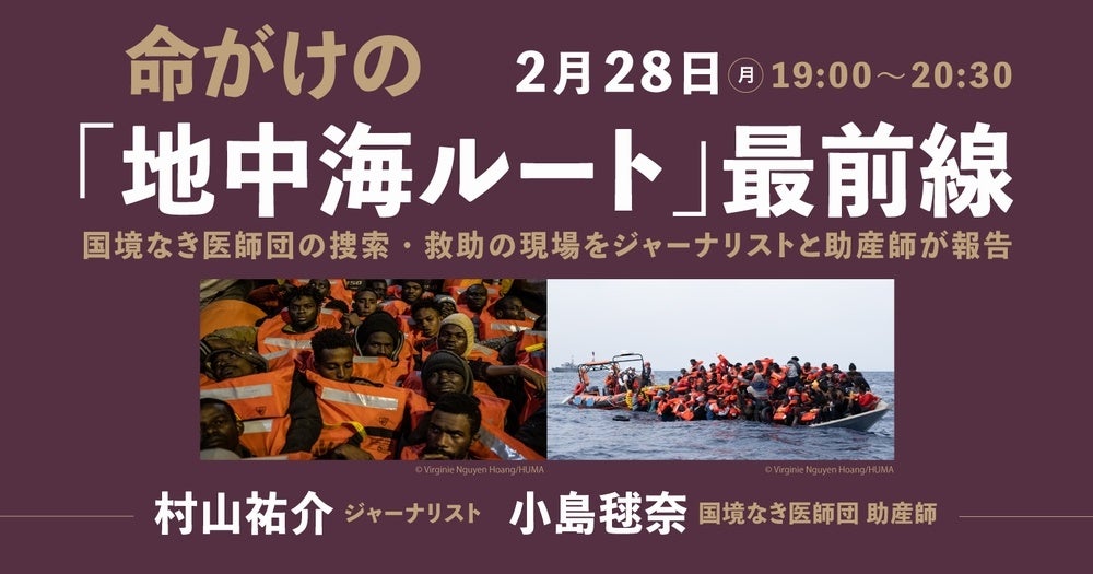 国境なき医師団(MSF)は2月28日(月)、森ビル株式会社が運営する「アカデミーヒルズ」と共同で、オンライントークイベント『命がけの「地中海ルート」最前線 国境なき医師団の捜索・救助の現場をジャーナリストと助産師が報告』を開催します。ジャーナリストの村山祐介氏とMSF助産師の小島毬奈が、命がけで欧州を目指す難民・移民を乗せた船の沈没が相次ぎ、昨年だけで2000人以上が死亡・行方不明(国際移住機関=IOM調べ)になった地中海、リビア沖での救助活動の最前線をお伝えします。