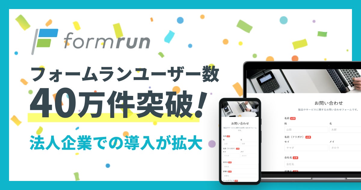 株式会社ベーシック(本社:東京都千代田区、代表取締役:秋山勝)は、フォーム作成ツール「formrun(フォームラン)」が累計40万ユーザーを突破したことをお知らせします。