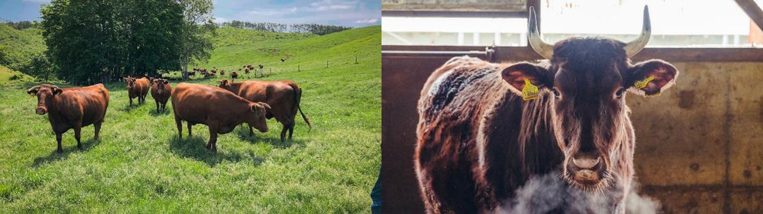 日本短角種という4種類ある和牛品種の一つで、江戸時代の南部藩で飼われていた南部牛をルーツにもちます。1957年に四大和牛の一つに認定され、和牛全体の0.5%しか流通されない最も希少な牛です。