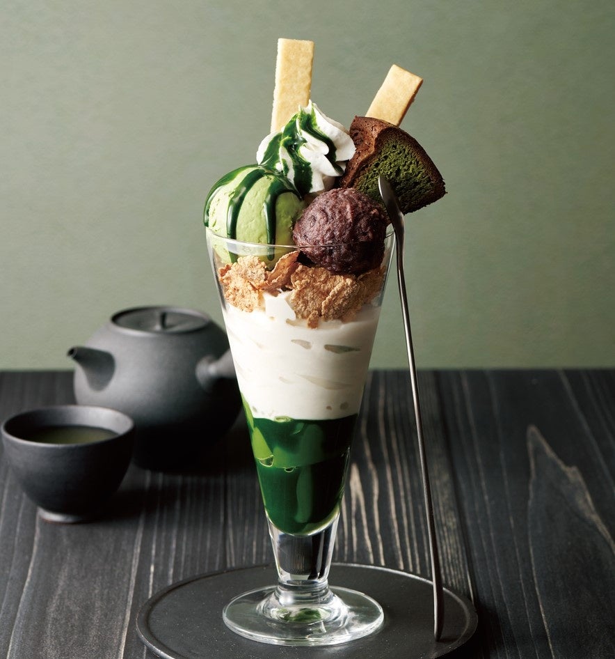 抹茶づくしのパフェにホワイトチョコレートベースの濃厚なガトーショコラをのせた、ボリューム満点の期間限定パフェです。