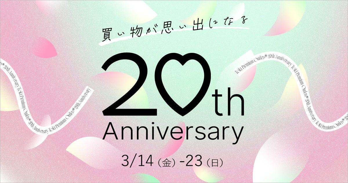 土岐プレミアム・アウトレット(所在地:岐阜県土岐市 / 運営:三菱地所・サイモン株式会社)は、3月に施設開業20周年を迎えるにあたり、これまでのご愛顧に感謝して、お得なセールやイベント、キャンペーンなどが盛りだくさんの「土岐プレミアム・アウトレット20th Anniversary Sale」を、3月14日(金)~23日(日)で開催します。