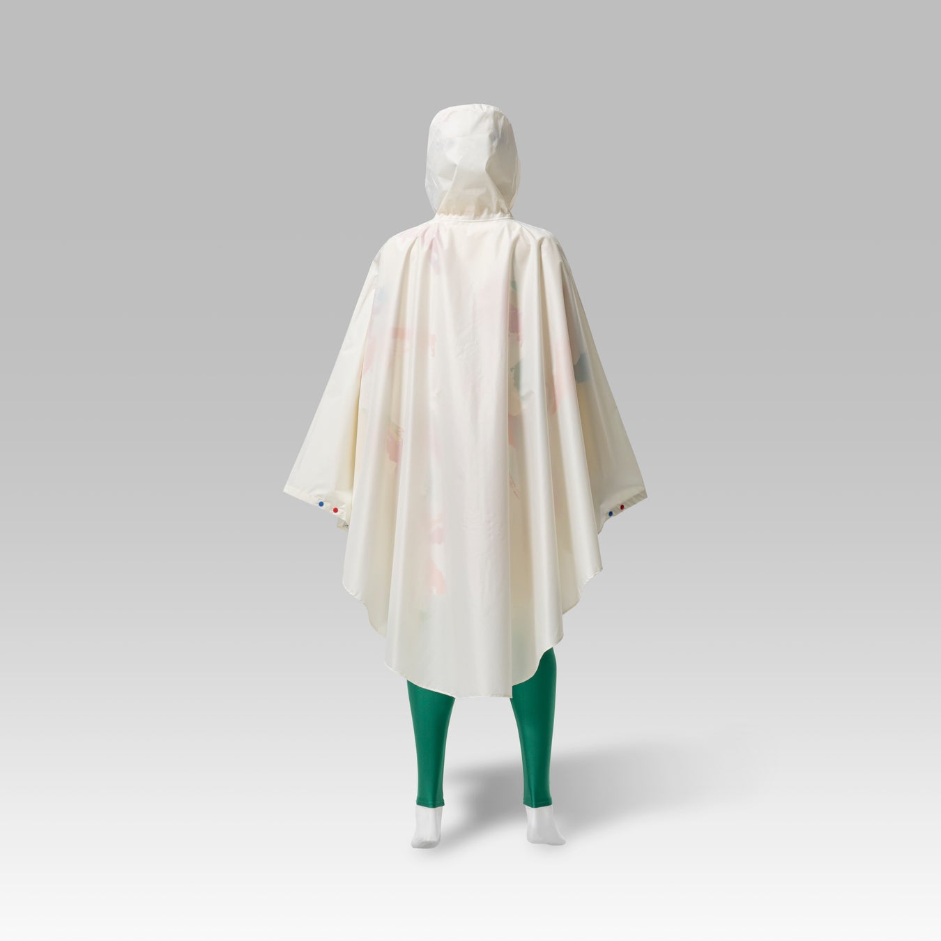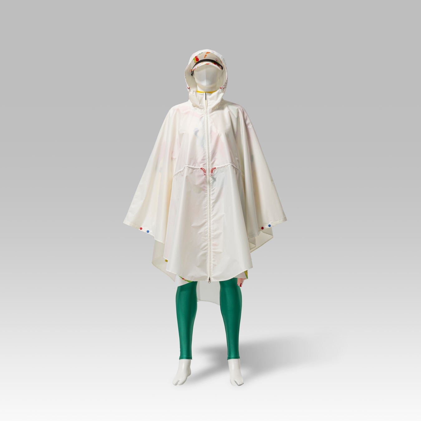 雨天時にはポンチョを着用します。防水性、透湿性に優れた生地を採用しています。