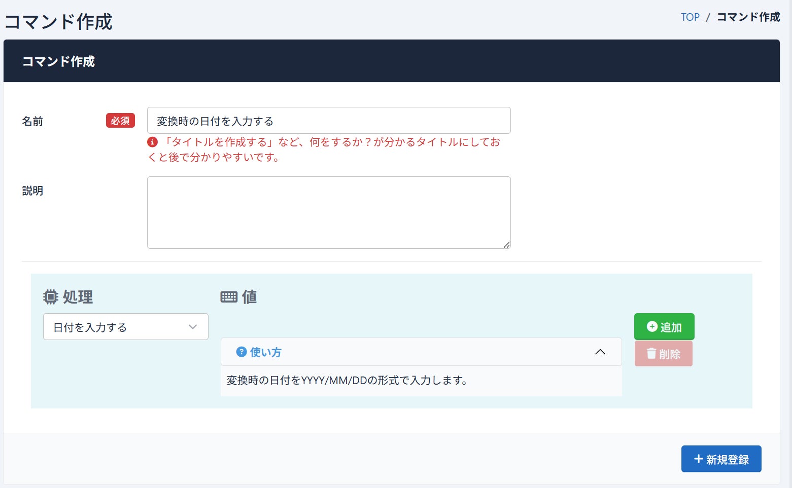CSVやフィードのルール作成時に利用可能なコマンドに変換時の日付を入力する機能を追加いたしました。この機能を利用することで掲載期間の管理を容易に行えるようになります。