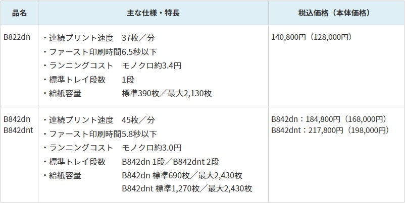 「COREFIDO(コアフィード)B822dn/B842dn/B842dnt」紹介サイト