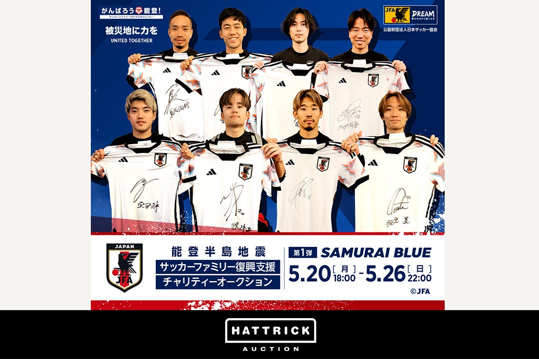 JFAでは、能登半島地震により被災したサッカーファミリーが、サッカーやスポーツを楽しむことができる日常を取り戻すためのサポートを行うべく、チャリティーオークションを実施することといたしました。