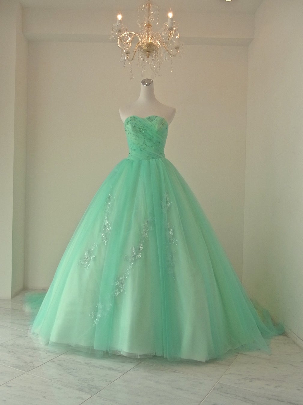 ラベンダーやピンクなどの色を合わせたグラデーションカラーが、とっても優しく愛らしい、ふんわりチュールのプリンセスドレス。何色もの色を重ねているので、動くたびに いろんな色が顔を覗かせ、グリッターチュールが内側からキラキラと品良く輝きます。ビスチェには、ラベンダーのグラデーションカラーのスワロフスキーを散らばるように刺繍しているので、動くたびにキラキラと輝きます。クールで上品な印象のドレスです。