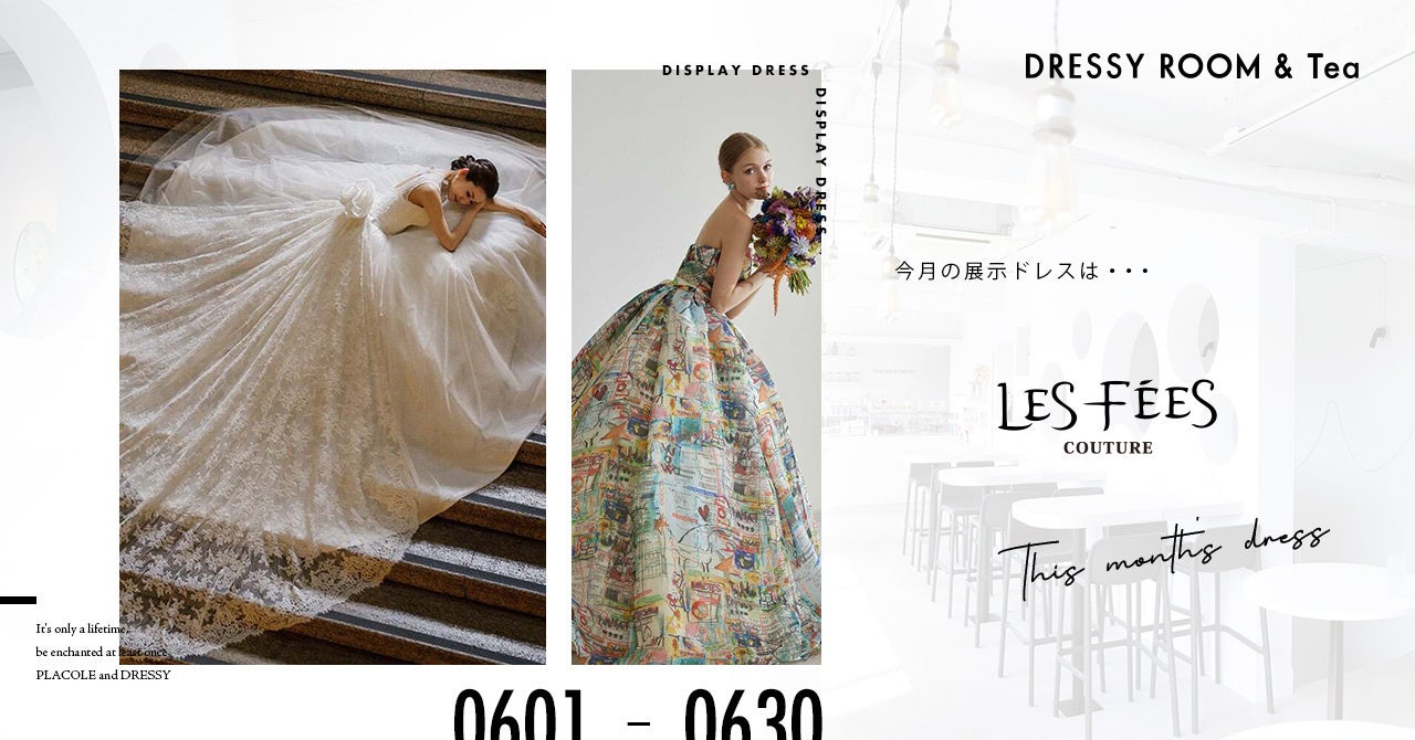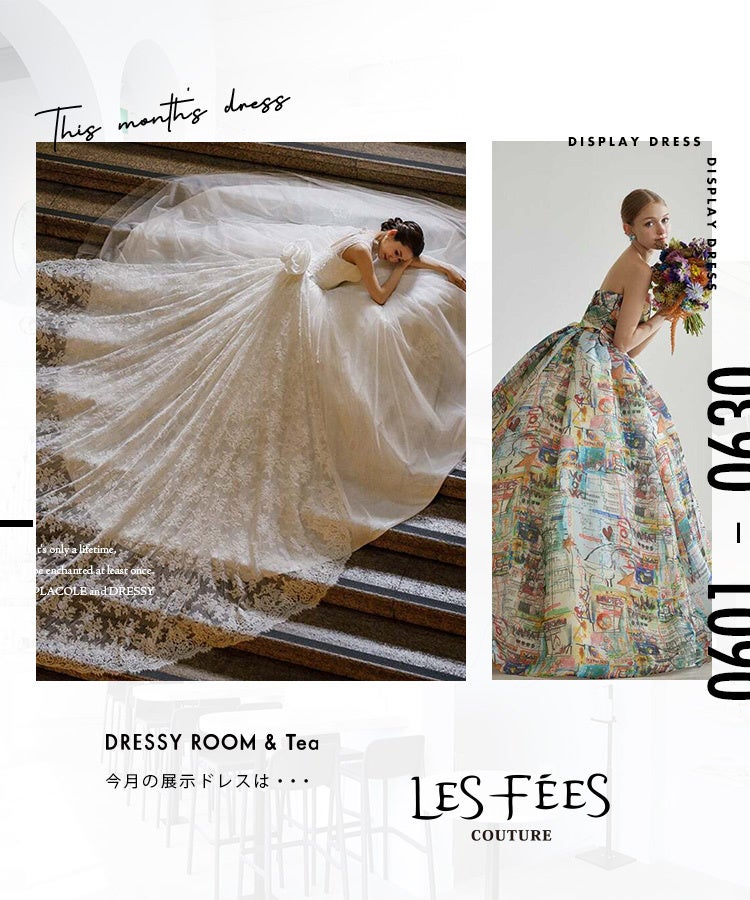 【DRESSY ROOM&Tea】6月のディスプレイドレスは『les fees couture (レフェクチュール)』のウェディングドレスを期間限定でお届けいたします。