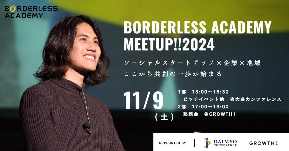 株式会社ボーダレス・ジャパン(所在地:福岡県福岡市、代表取締役:⽥⼝⼀成、以下:ボーダレス)が運営する社会起業のためのソーシャルビジネススクール「ボーダレスアカデミー」は、2024年11月9日(土)福岡大名カンファレンスにて社会起業家と企業・地域の共創を生み出す「MEET UP2024」を開催することをお知らせします。
