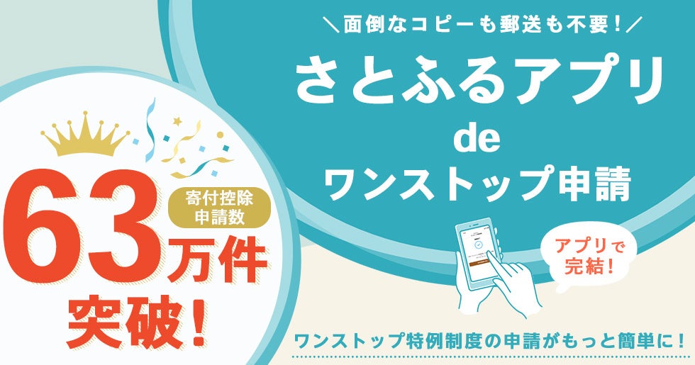 ワンストップ特例制度の申請がオンラインで完結する「さとふるアプリdeワンストップ申請」開始約2か月半で寄付控除申請数が63万件以上に