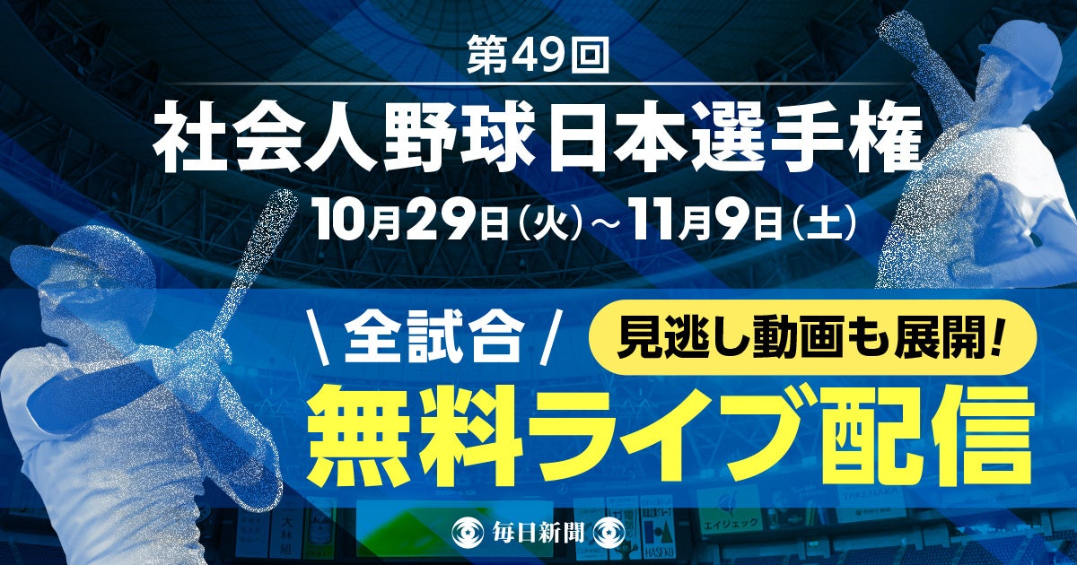 第49回社会人野球日本選手権、全31試合を無料ライブ配信!