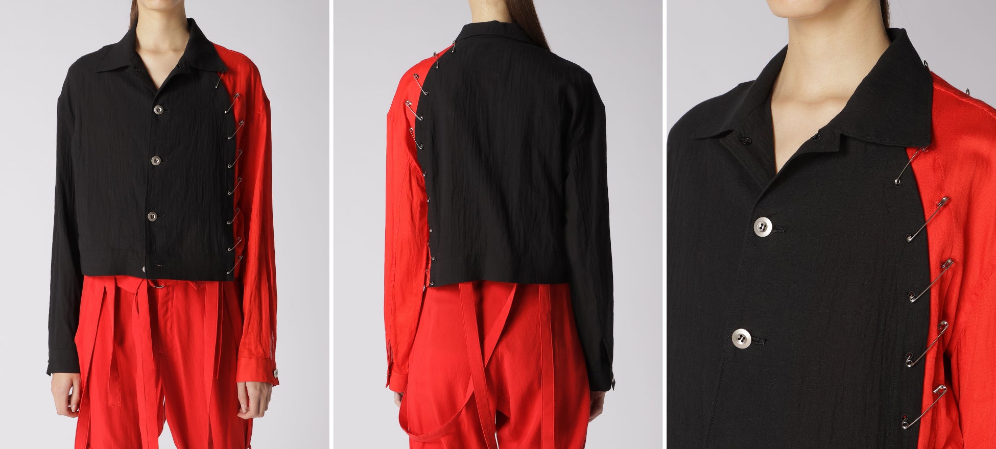 セーフティピン付バイカラージャケット 102,300 yen(3月発売)