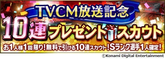本スカウトの登場に合わせて、16日(土)からテレビCMも放送!これを記念した、Sランク選手1人確定の無料10連スカウトも実施します。