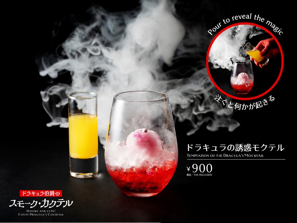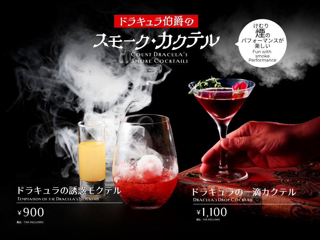 目の前で煙のパフォーマンスが楽しめる「ドラキュラ伯爵のスモーク・カクテル」も登場!