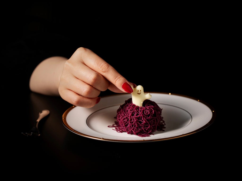 ドラキュラ伯爵の“こわカワ”な世界観を引き立てる品々が、特別なハロウィンのひとときをより印象的に演出します。五感で楽しむ、おいしくて楽しいスイーツの饗宴を、心ゆくまでお楽しみください。