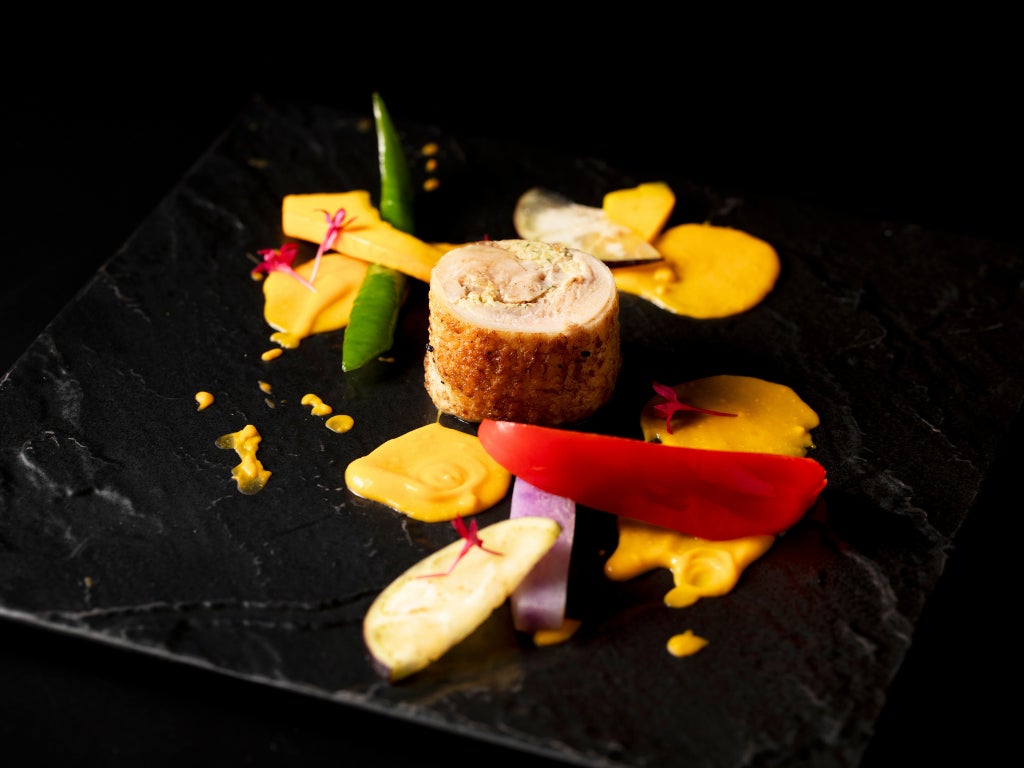 ・お肉料理「鶏腿肉のバロティーヌ ~南瓜のクーリ シュプレームソース~」