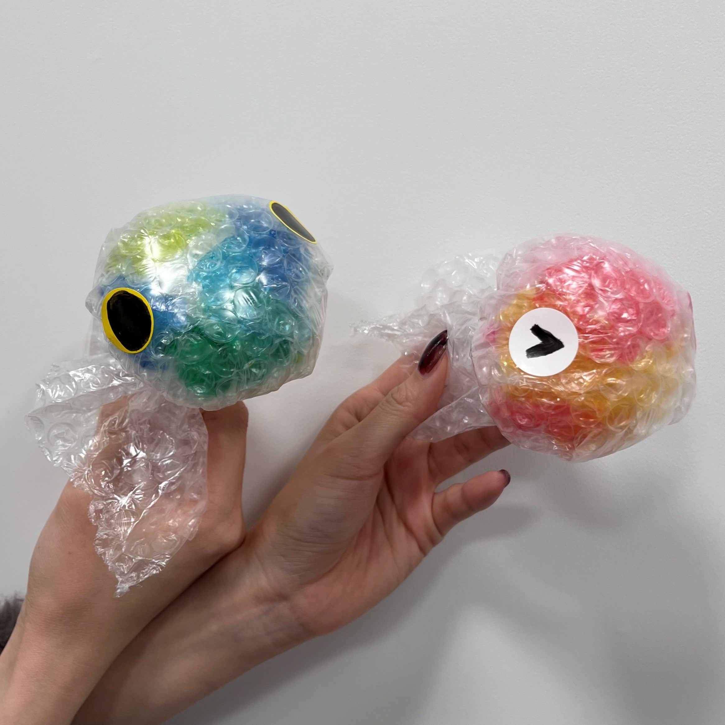 牛乳パックやプチプチ、段ボールを使って、金魚やカエルなどのおもちゃを手作りします。あらかじめ「できたもの」を買うのではなく、自分のアイデアでゼロから「創る」楽しさで、子どもたちの好奇心を刺激します。