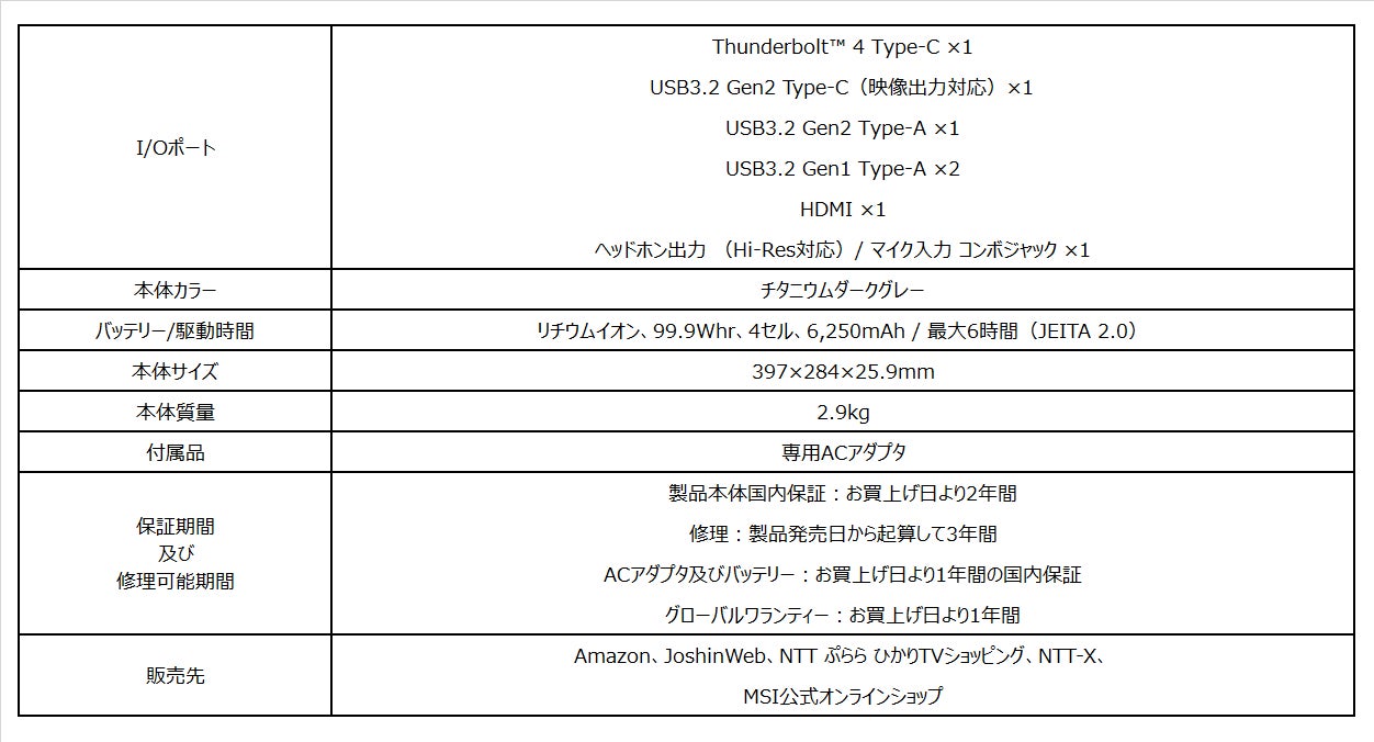 ・Raider GE77 HX 12U シリーズ製品ページ: https://jp.msi.com/Laptop/Raider-GE77-HX-12UX