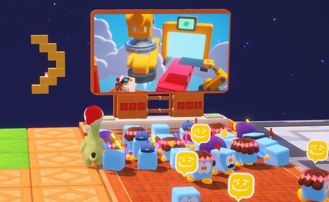最大32人が同時に競い合うマルチプレイアクション。横スクロールアクション、謎解き、レース……テーマが毎日入れ替わるパーティー“ゲーム”で、宇宙級のレアアイテムをゲットするチャンス! さらに自由度の高いエディター機能を使えば、オリジナルステージを作成して世界中の冒険者に挑戦状を送ることも可能です。