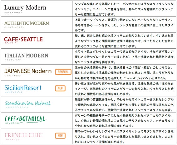 ~ 開放的な地中海スタイル「シチリアンリゾート」、大人かわいい「フレンチシック」を追加人気の「ジャパニーズモダン」は“Japandi(ジャパンディ)スタイル”にアップデート ~