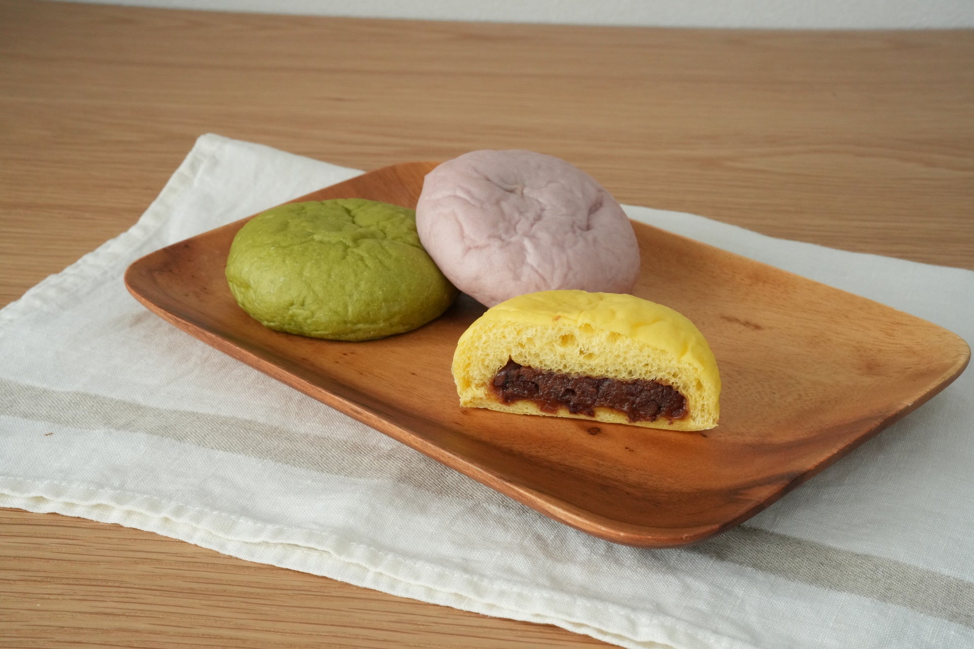 北海道産の小豆を、米麹を使って発酵させた発酵菓子「こうじあん」のあんぱん。あんを包むパン生地は、野菜粉末と米粉入りの「やさいぱん」です。香料・着色料を使わず、自然な香りと色を活かしました。