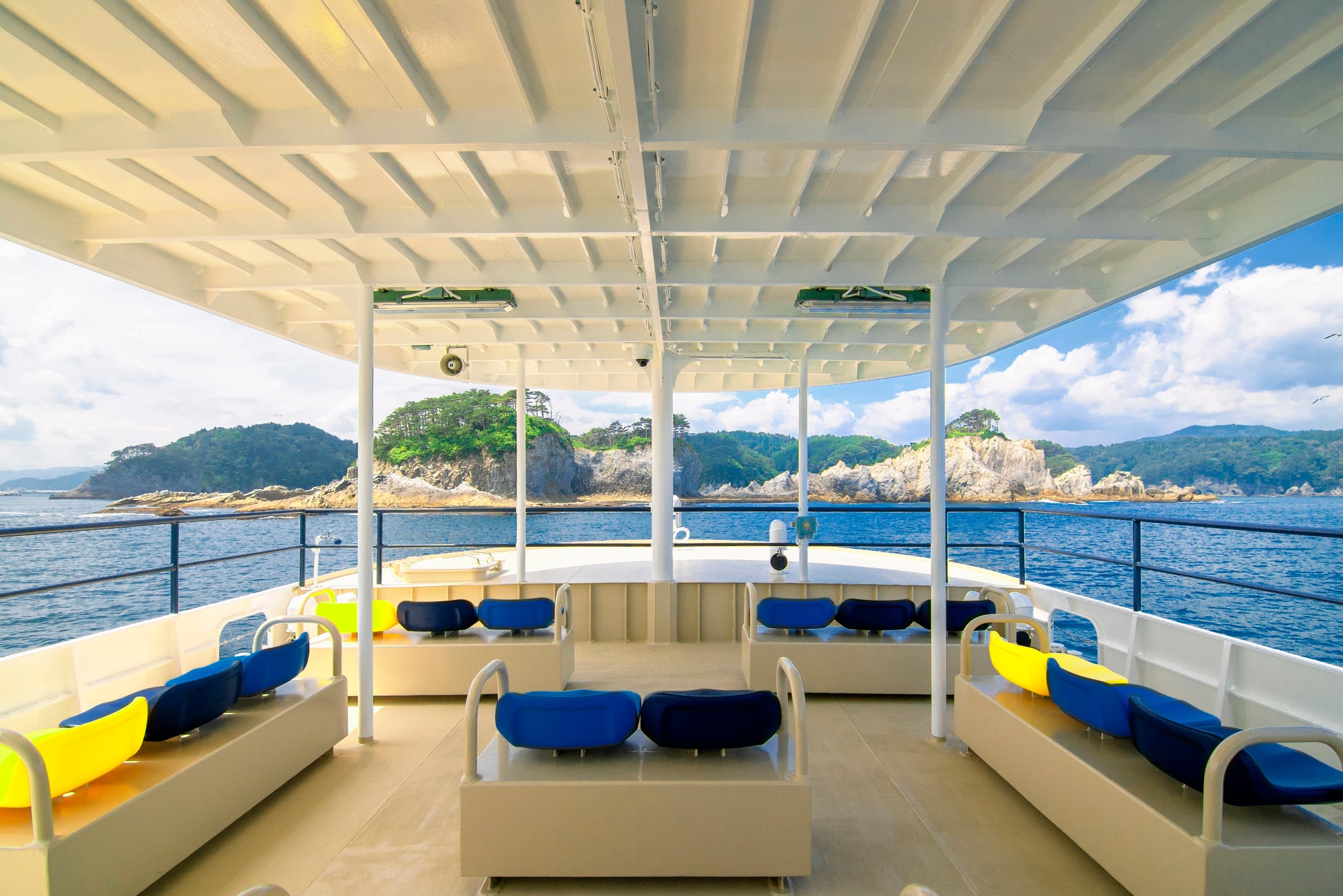月27日に就航しました。広い展望デッキからは太平洋の大海原や、船上からしか眺めることのできない国指定天然記念物「ローソク岩」をはじめとする数々の奇岩など、雄大な景色を満喫できます。「宮古うみねこ丸」の船体前方から後方に伸びるラインのデザインには、透明度の高い海、常緑のアカマツ、白い流紋岩が調和する風景イメージから誕生した「浄土ヶ浜エターナルグリーン」という地域色が使われています。2024年9月24日には乗船者数が10万人を突破。観光客や地域住民の足として、多くの人々から愛されています。