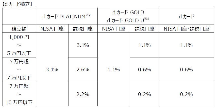※8「dカード GOLD」「dカード GOLD U」の積立額に対するポイント還元率は同じです。