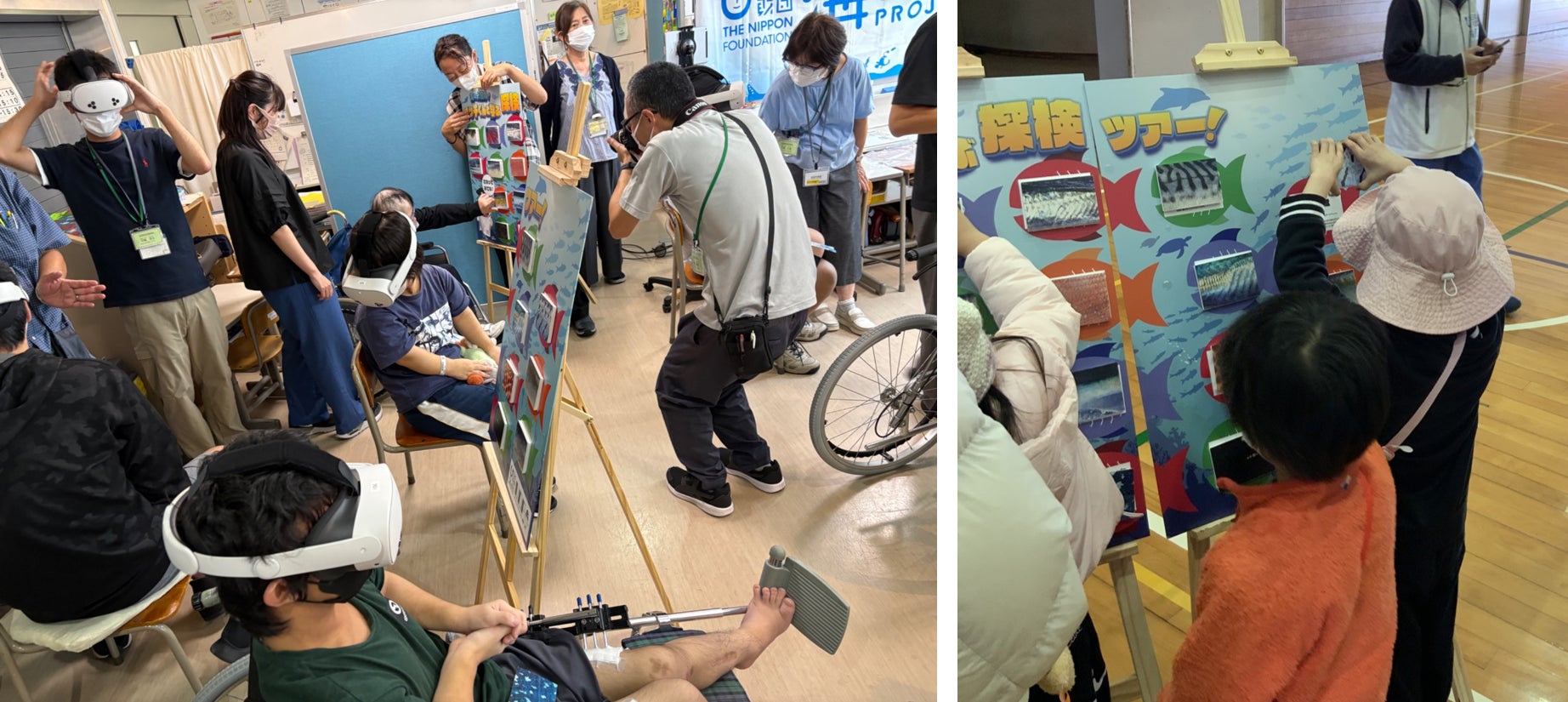 以下の院内学級にてVirtual Ocean Project企画「海の大冒険!ブッチくんと学ぶ探検ツアー!」として、海中映像とナビゲーターのジンベエザメのブッチくんとのリアルタイム対話を通じた海の学習プログラム、VRゴーグルによる海中体験、触れるパネルを使い海の魅力や海洋問題について学ぶ機会を提供しました。