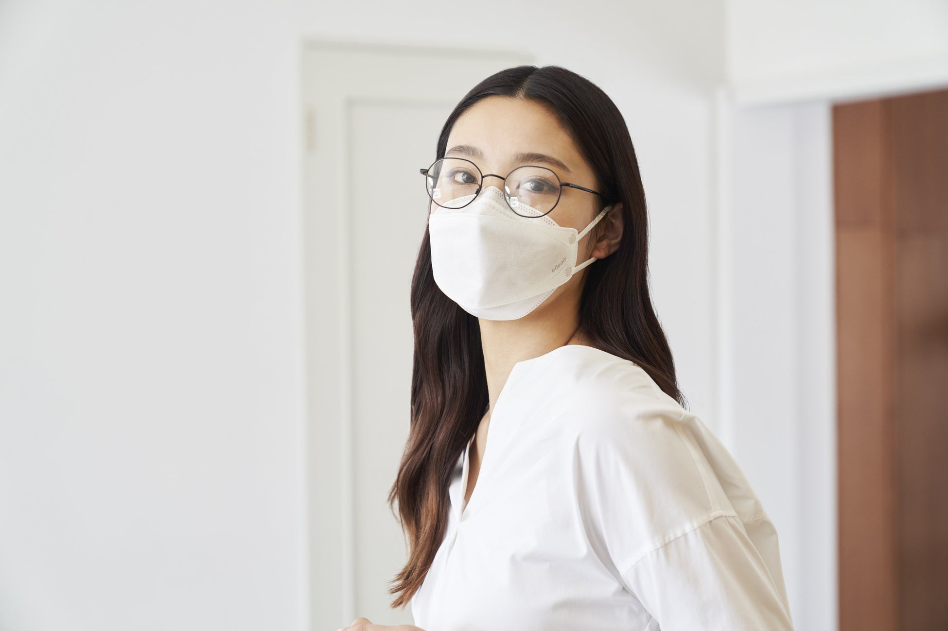 ・口元に空間ができるため、息や会話がしやすく※、メガネが曇りにくい※形状です。