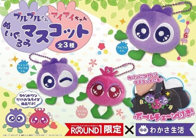 初コラボが実現!【わかさ生活×ROUND1】企業公式Twitterきっかけでわかさ生活公式キャラクター「ブルブルくん」「アイアイちゃん」ぬいぐるみなど限定プライズ商品を展開!