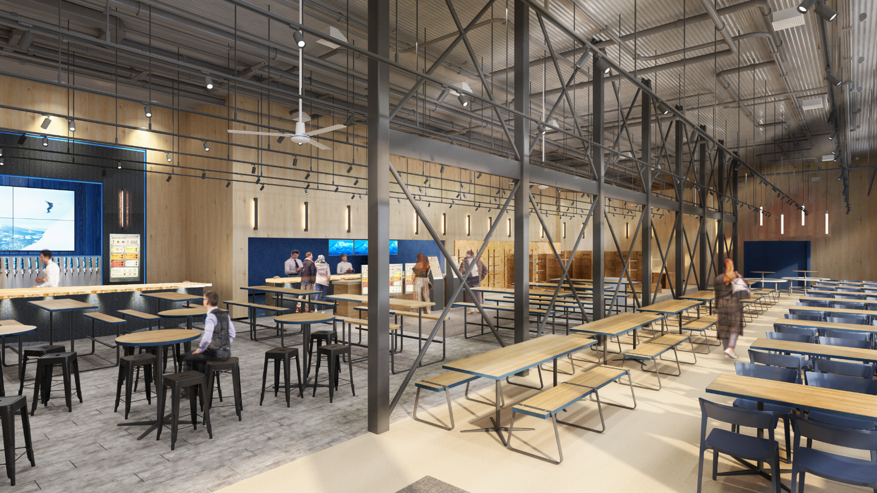 併設されるレストランはゆったりと食事が楽しめるダイニングエリアと、カジュアルに交流のできるバーエリアに分かれており、合計で約240席+スタンディングエリアを備える計画です。バーカウンターから提供されるクラフトビールを最大限楽しむための食事メニューを取り揃えてまいります。客席にはDJブースや大型サイネージなども完備しており、冬の昼食時のレストラン需要を満たすことはもちろん、アプレスキー(※2)~ナイトタイムにおいても営業を行うことで、ゲレンデで滑り終わった方や近隣の宿泊施設にお泊りの方がお酒や音楽を楽しめるような設計としております。特に12月下旬~2月のハイシーズンにおいては、夜23時まで営業を行うことを計画しており、種々のイベントも開催していくことで、アッパーヒラフエリアに不足するナイトタイム需要の受け皿となってまいります。クラフトビールの詳細、提供するメニューや営業時間の詳細、イベントの実施等につきましては、別途告知の機会を設けさせていただきます。