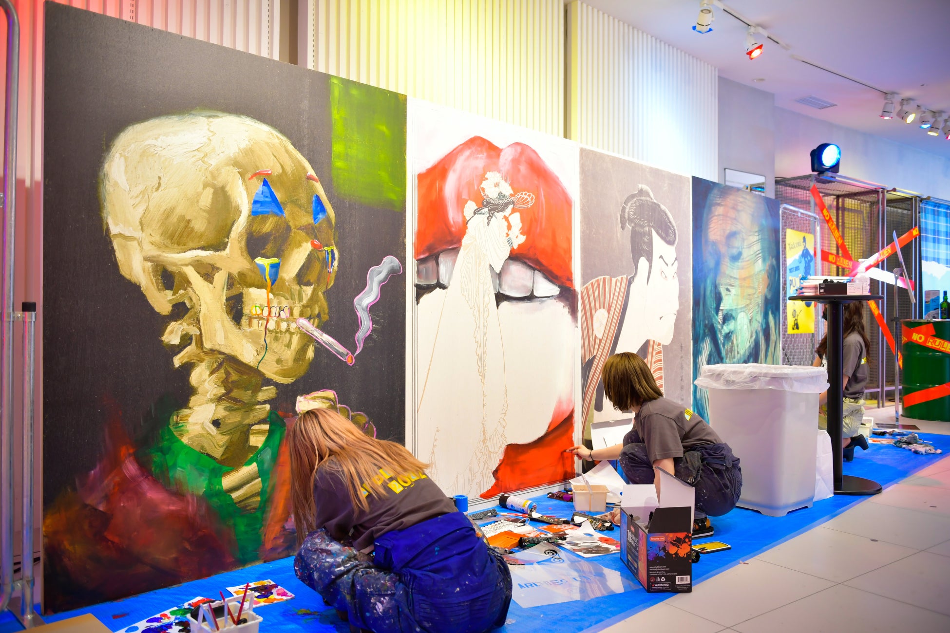 会場では、イラストスタッフとして東京藝術大学の学生がお手本で、ライブペイントの実演を行い、盛り上がりをみせました。