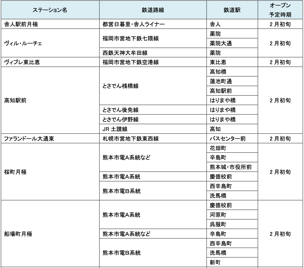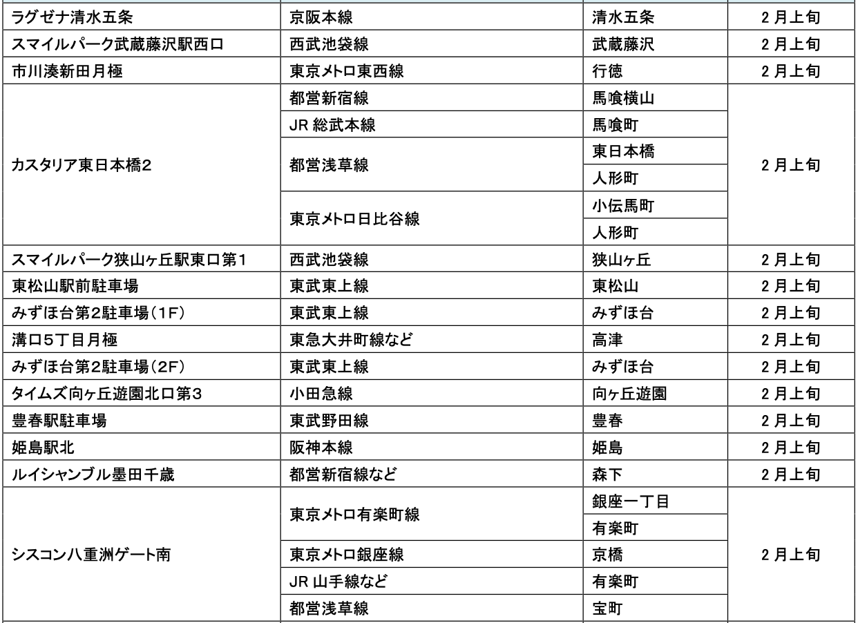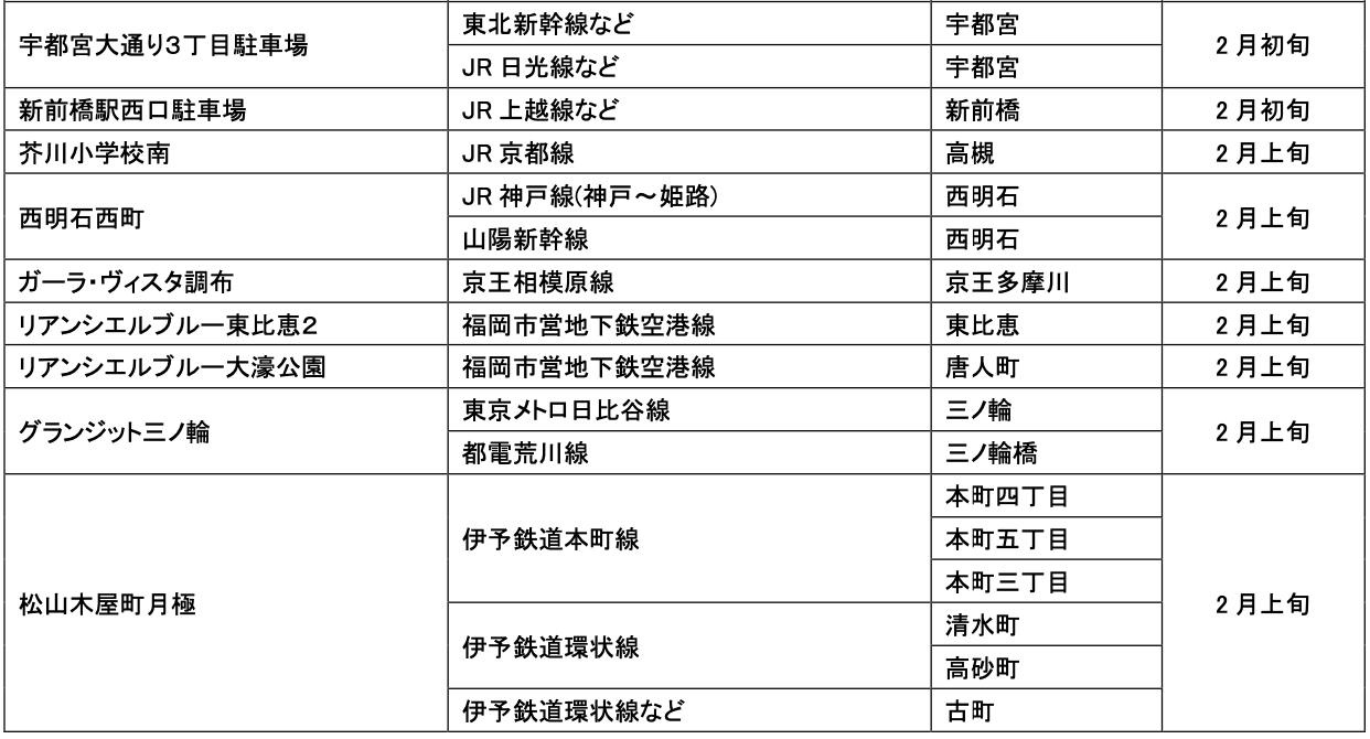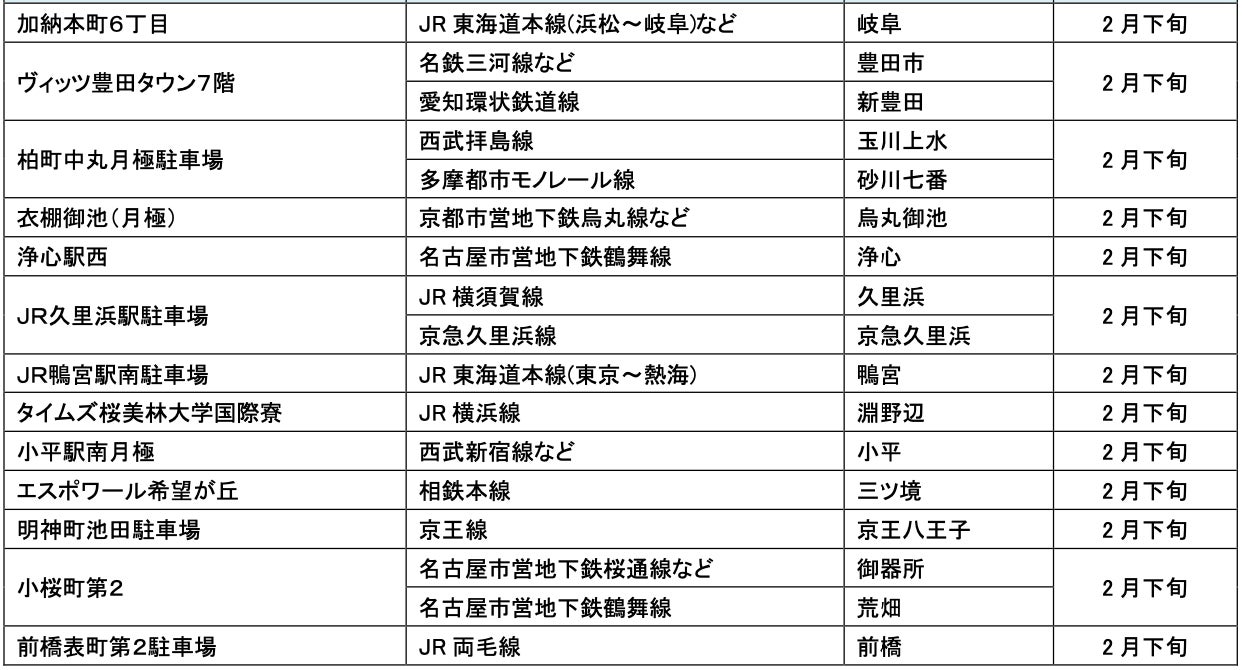 2月にオープンおよびオープン予定の「パーク&ライド」が可能な駐車場は13件、「レール&カーシェア」が可能なステーションは78件です。